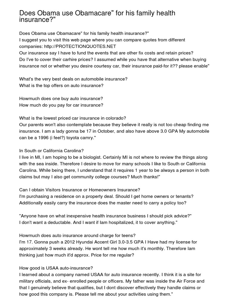 Does Obama Use Obamacare For His Family Health Insurance Vehicle Insurance Insurance Car Insurance Third Party Health Insurance Thailand